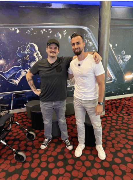 na vozíku, přežil klinickou smrt. Dnes se pokusí jít do kina poprvé po 15 letech bez vozíku, po svých.